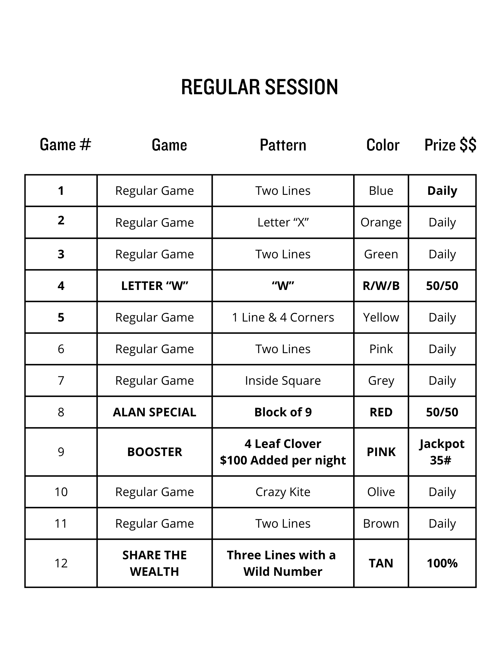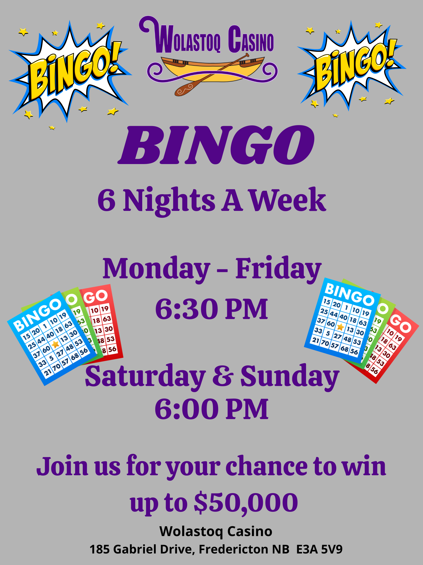 MP Bingo 6:00 pm – Regular Games 6:30 pm